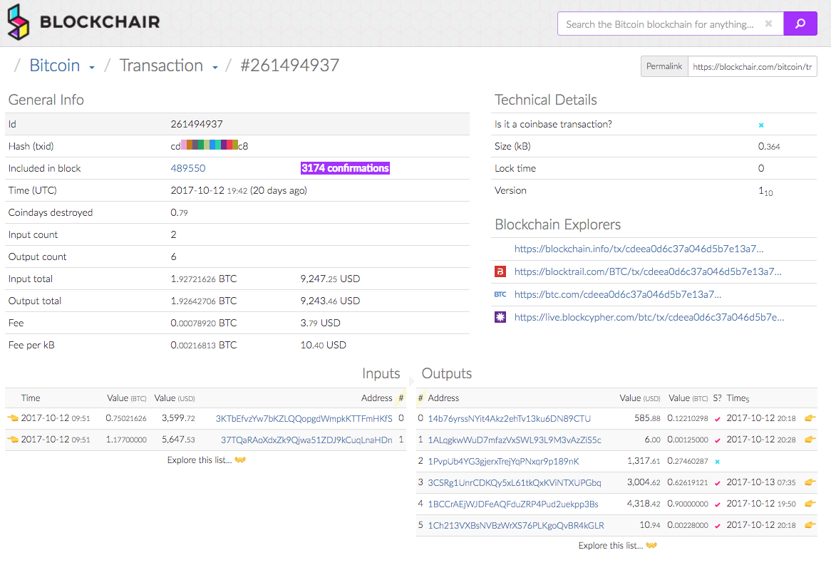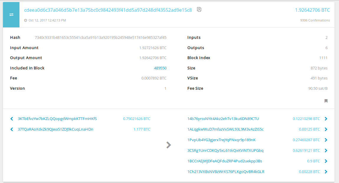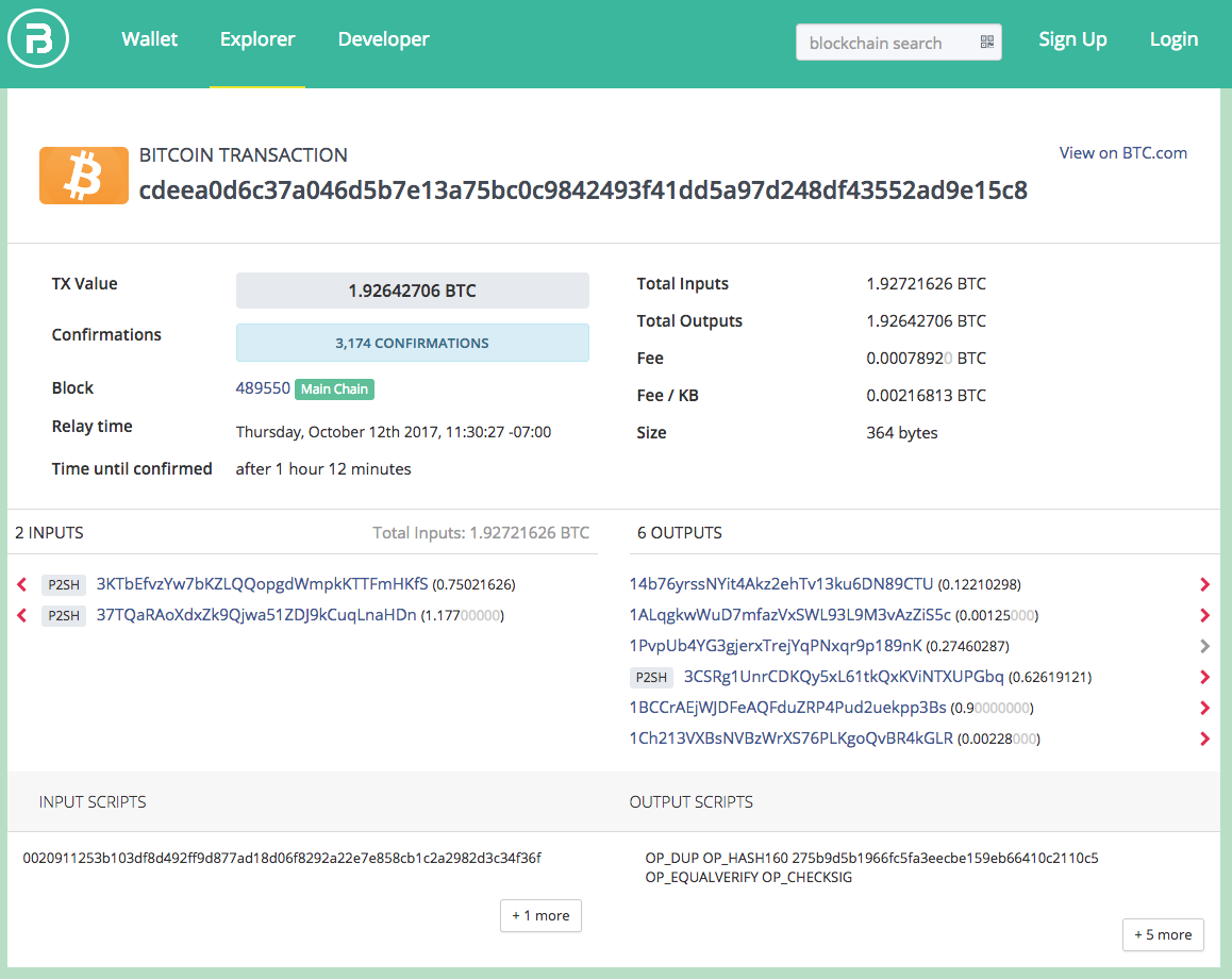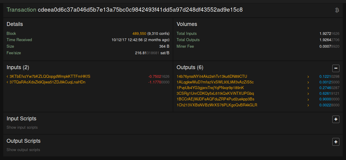 The problem is that popular blockchain explorers don’t get the fee rate right. Let’s look at the following transaction with two P2SH-P2WSH multisig inputs and six outputs: